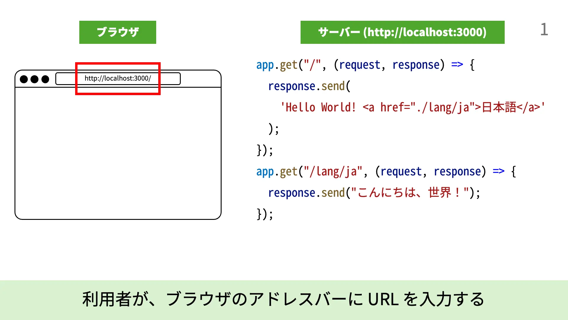 1. 利用者が、ブラウザのアドレスバーにhttp://localhost:3000/というURLを入力します。